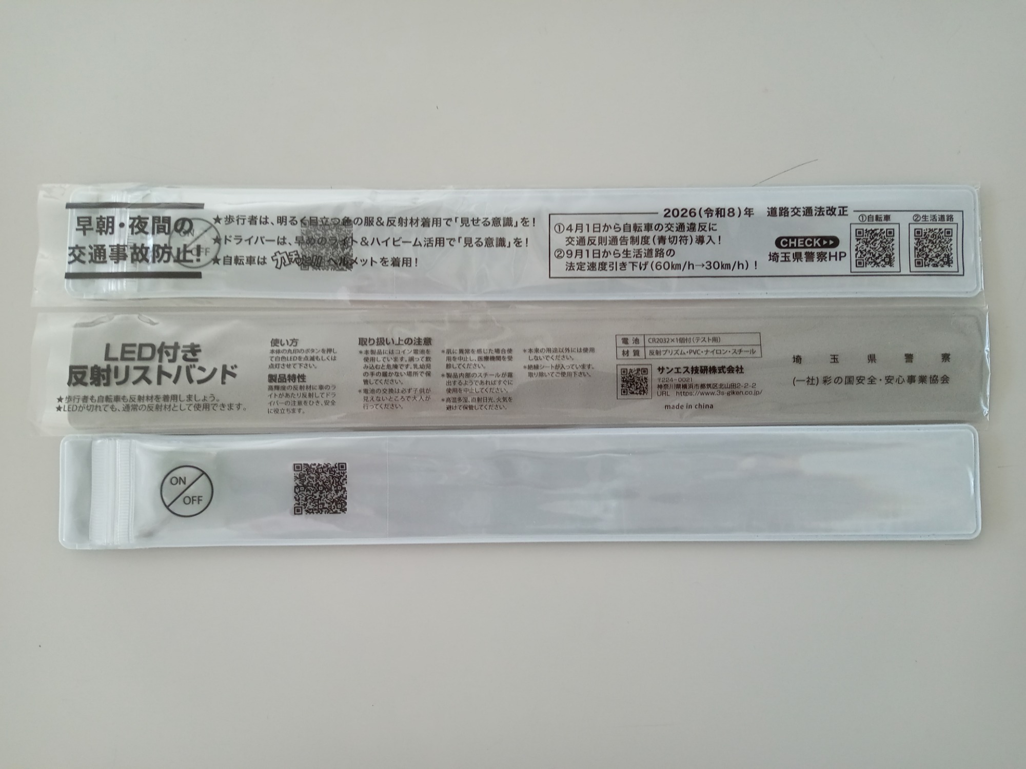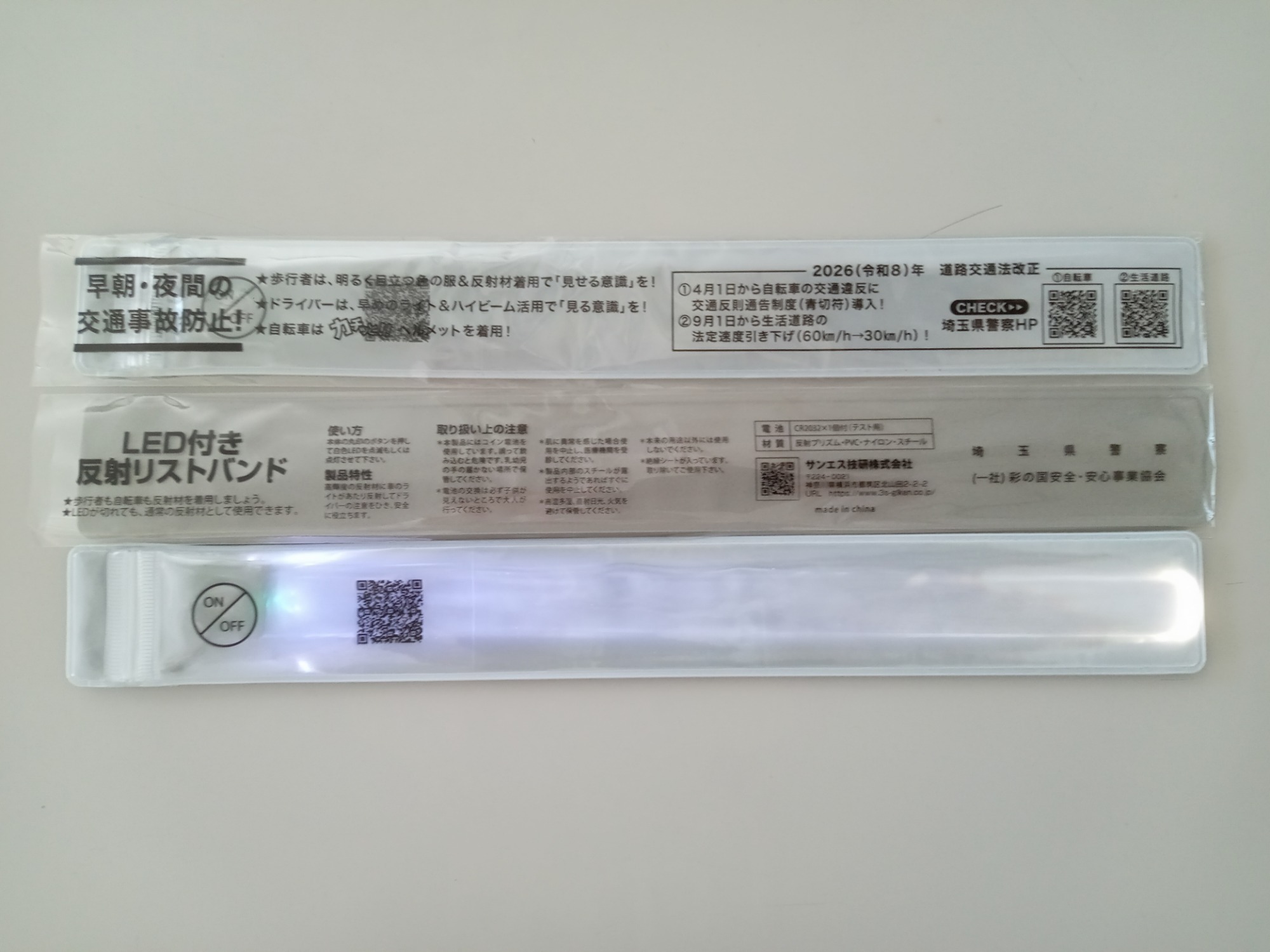 今年度の社会貢献活動として、埼玉県警察本部の「早朝・夜間の交通事故防止」を図るための活動に協賛することとなり、LED付き反射リストバンドの製作をしました。